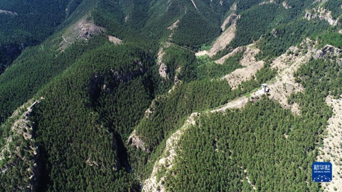 這是綠意盎然的賀蘭山蘇峪口國家森林公園(無人機(jī)照片,6月14日攝)。新華社記者 王鵬 攝