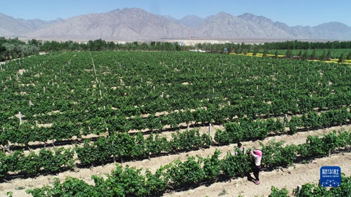 “賀蘭山下果園成,塞北江南舊有名。”夏日的賀蘭山東麓,翠綠的葡萄園沿山勢綿延南北,一眼望不到頭。