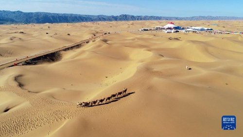 這是在寧夏中衛(wèi)市拍攝的騰格里沙漠(無人機(jī)照片,2018年9月7日攝)。新華社記者 王鵬 攝