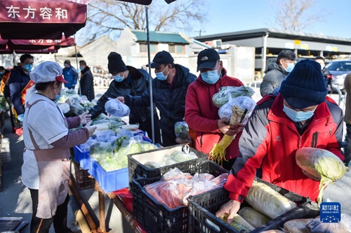 北京前門平房區(qū)居民在選購蔬菜(2020年3月13日攝)。新華社記者 彭子洋 攝