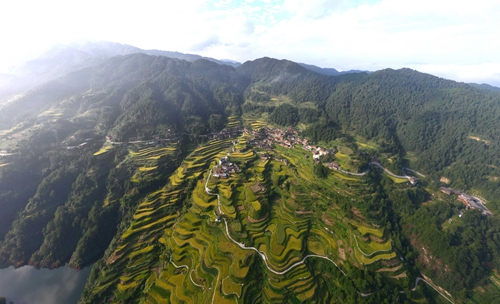 走進(jìn)“被譽(yù)為“梯田托起的村莊”的少數(shù)民族特色村寨--雷山縣丹江鎮(zhèn)白巖村,舉目遠(yuǎn)眺,只見峰巒疊翠間,層層梯田處,曲折小徑串通各特色民居,田間處處是新景,這是八方游客心中向往的詩(shī)意棲居。