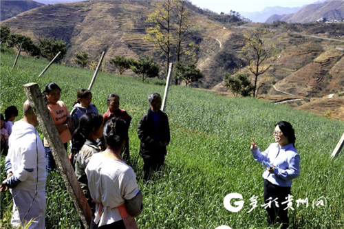 2月20日下午,在水城區(qū)阿戛鎮(zhèn)中壩村的一片小麥地里,全國人大代表、水城區(qū)農(nóng)業(yè)農(nóng)村局植保站站長楊恩蘭耐心地為農(nóng)戶講解“植物病蟲害防治”技術(shù)。