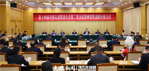 3月3日下午,出席十四屆全國人大二次會(huì)議的貴州代表團(tuán)在北京舉行組團(tuán)會(huì)議。全國人大代表、省委書記、省人大常委會(huì)主任徐麟主持會(huì)議。