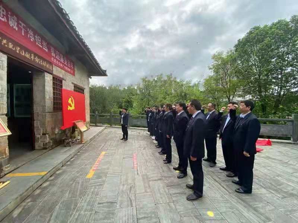 走進(jìn)李家祠堂,一幅幅披荊斬棘、攻堅(jiān)克難的感人畫面,一個(gè)個(gè)敢于擔(dān)當(dāng)、無私奉獻(xiàn)的先進(jìn)典型展現(xiàn)眼前。1935年11月,這里誕生了黔東第一個(gè)中共地下組織,以李光庭、李長(zhǎng)青為代表的中共地下黨員在這塊土地上播撒下革命的種子,在凱里這片土地上生根、發(fā)芽、開花、結(jié)果。面對(duì)鮮紅的黨旗,高舉右手、緊握右拳,鏗鏘有力地重溫入黨誓詞:“我志愿加入中國(guó)共產(chǎn)黨……” 齊聲表達(dá)堅(jiān)定信念“跟黨走”的忠誠信仰。