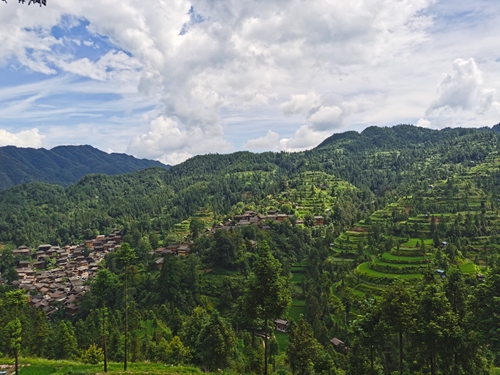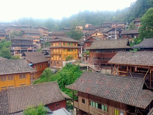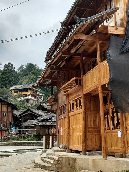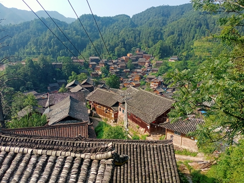 伴隨著雞鳴犬吠聲,緩緩走進反排苗寨古街老巷里,只見迂回的石板路干凈整潔,苗式吊腳樓錯落有致,農家庭院綠意盎然,村民們三五成群閑坐院子里燒火做飯敘家常,炊煙裊裊,寧靜而祥和,這一脈景象在青山翠谷中,呈現(xiàn)出一幅絕美的人間煙火畫卷……