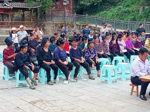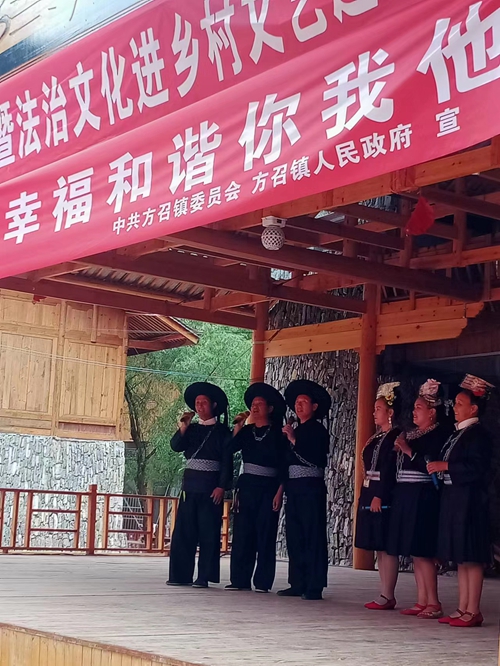 堅持法治賦能鄉(xiāng)村治理,依托“一中心一張網十聯(lián)戶”治理體系,大力培育“法律明白人”、村法律顧問、一村一警、學法用法示范戶、人民調解員等法治人才,充實基層法治隊伍,充分運用“調解式”普法、“說唱映”普法、“法治訂單”送法等宣傳方式,廣泛開展以案釋法警示教育、“苗歌”普法文藝匯演、院壩協(xié)商、村民議事會等宣傳活動,通過進鄉(xiāng)村、進農戶、進校園等途徑開展法治宣傳,建立法治宣傳欄、法治長廊、法治圖書角等法治文化陣地,積極利用鳴鑼喊寨、喇叭宣傳、“線上+線下”、黨政大走訪等普法方式,持續(xù)開展雙語普法。截至目前,共計播放《以案釋法 警鐘長鳴——黔東南州法治警示教育專題片》80余次,已實現(xiàn)轄區(qū)干部、村干、網格員和在家群眾等4000余人全覆蓋觀看,開展鎮(zhèn)級大型苗歌普法文藝巡演活動1次、村級苗歌普法文藝匯演活動5次,組建了 12支苗歌普法代表隊,制作永久性宣傳標語12條、法治教育宣傳欄27個,實現(xiàn)9個行政村全覆蓋,發(fā)放各類宣傳物資800余件,發(fā)放宣傳資料10000余份,進一步提高全民法治意識,為建設和美方召營造了濃厚的法治氛圍。