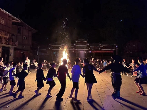 “每當夜色降臨,在反排村文藝大舞臺廣場上總能看到,篝火點燃,蘆笙吹響,村民們載歌載舞,熱鬧非凡的景象,交織出一幅活力勃發(fā)、“煙火氣”十足的治理畫卷,反排村要乘著‘四大行動’的東風,保持好經濟發(fā)展勢頭,積極發(fā)展旅游產業(yè),擴大消費需求,讓苗寨的‘煙火氣’既能擴寬市場又能改善民生。都說‘人間好煙火,最撫凡人心’,相信反排村百姓們的幸福日子必將會更加紅火?!狈磁糯迓?lián)系鎮(zhèn)領導、方召鎮(zhèn)政法委員楊彰宇說。