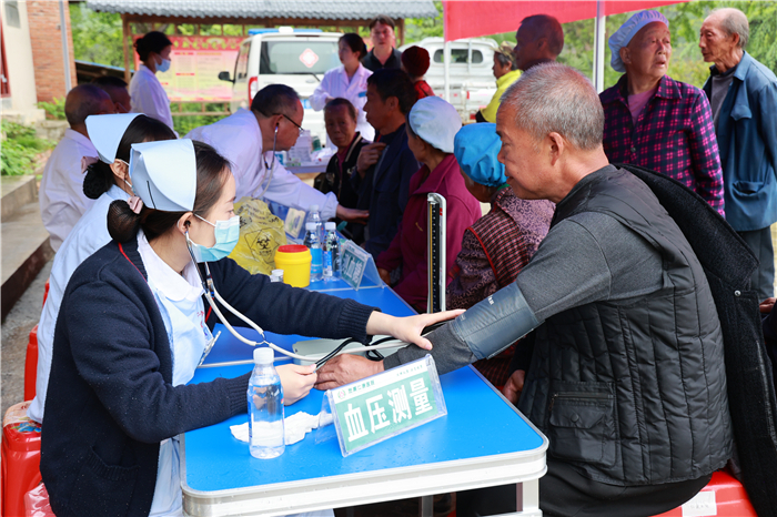 義診現(xiàn)場(chǎng),村民們慕名而來(lái),有序排隊(duì)等候就醫(yī)。醫(yī)務(wù)人員就各自不同的專業(yè)領(lǐng)域,認(rèn)真地為每一位前來(lái)就診的老百姓進(jìn)行檢查及診斷,仔細(xì)聽取訴求,耐心答疑解惑,有針對(duì)性地進(jìn)行血壓、血糖測(cè)量和心電圖、B超等健康檢查服務(wù),并根據(jù)群眾需求免費(fèi)發(fā)放常用藥品,對(duì)不能現(xiàn)場(chǎng)診治的患者提出就醫(yī)指導(dǎo)。縣紅十字會(huì)的志愿者按照心肺復(fù)蘇的急救要領(lǐng)為村民講解了如何救助心臟驟停及異物窒息、溺水等急救基礎(chǔ)知識(shí),以通俗易懂的語(yǔ)言,并借助人體模型,詳細(xì)演示和介紹了具體操作步驟和要點(diǎn),以提高村民在突發(fā)事件中的自救、互救技能。