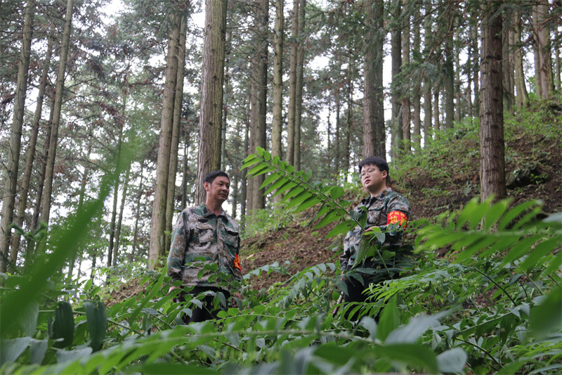 “之前我父親就是一名護(hù)林員,他守護(hù)了這片山林20多年,我的童年一直在林場生活,對大山的熱愛堅定了我選擇和父親同樣的職業(yè)?!睏钫d說道。從小和父親穿梭在茂密的山林間,耳熏目染父輩們守護(hù)森林的熱愛和責(zé)任感,使他內(nèi)心深處有一種深深的綠色情愫,立志要成為一名出色的護(hù)林員??既氪髮W(xué),他選擇了林業(yè)專業(yè),2018年畢業(yè),毅然放棄了城市的繁華,回到家鄉(xiāng),接過父親的接力棒,成為八萬山林場的一名護(hù)林員。