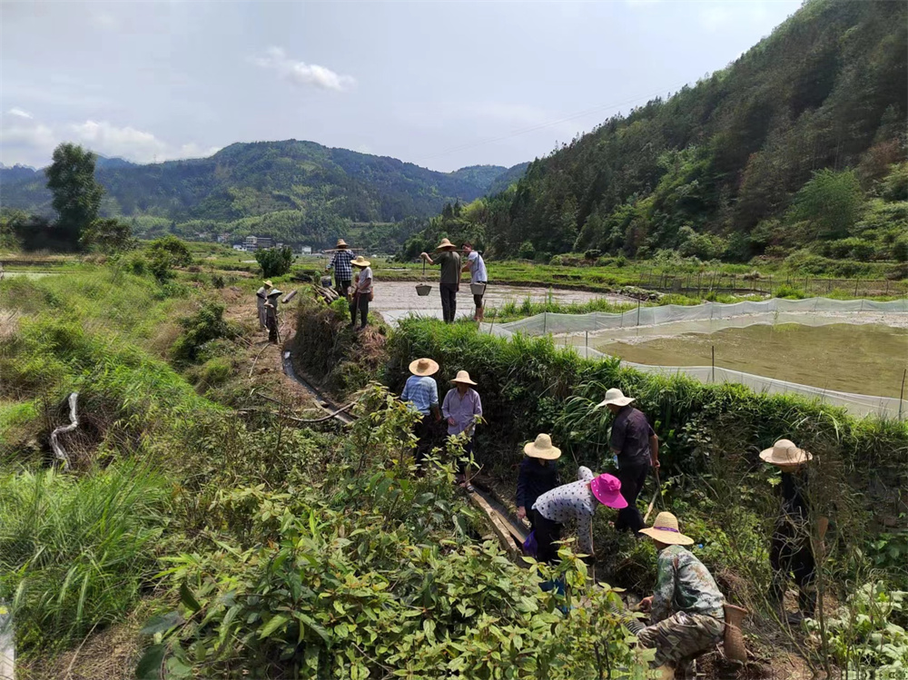 為保證榮新村村民春耕的順利開展,榮新村“兩委”組織投工投勞修建、清理農(nóng)田水渠項目,為春季犁田、育秧、插秧等工作提供水源供給,全面加強(qiáng)農(nóng)田基礎(chǔ)設(shè)施建設(shè),加強(qiáng)小型農(nóng)田水利設(shè)施建設(shè)和管護(hù),統(tǒng)籌推進(jìn)春耕高效灌溉水渠修建工程。
