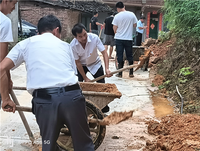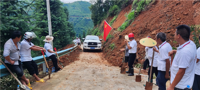 向“汛”而行,恢復(fù)生產(chǎn)生活。風(fēng)雨無情人有情,面對(duì)邊坡塌方,樹木倒塌、道路中斷等情況,貫洞鎮(zhèn)搶抓有利時(shí)機(jī),組織各村(社區(qū))黨員干部吹響黨員清淤“集結(jié)號(hào)” 清理現(xiàn)場。截至目前,已累計(jì)出動(dòng)救災(zāi)人員300余人次,調(diào)用鏟車2輛33次、運(yùn)輸車1輛12次、挖掘機(jī)1輛15次,疏通通村道路20余條。