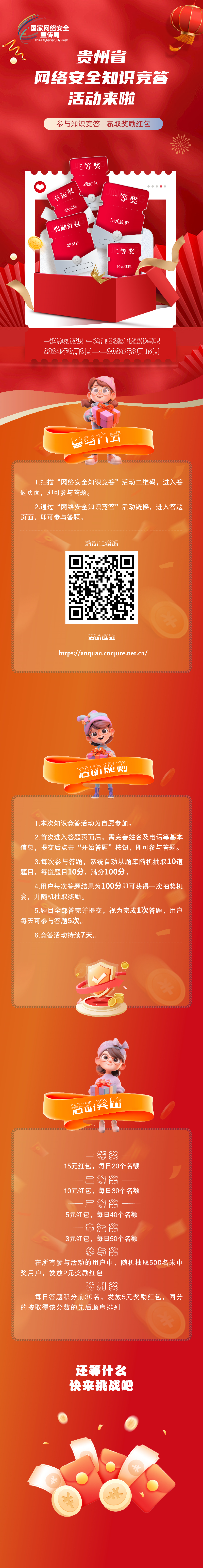 9月9日至9月15日,2024年國(guó)家網(wǎng)絡(luò)安全宣傳周期間,貴州省將開(kāi)展“網(wǎng)絡(luò)安全知識(shí)競(jìng)答”活動(dòng)。