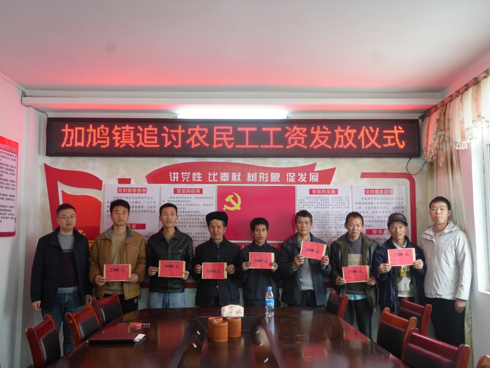 “多虧了政府,在春節(jié)前幫助我們討回薪資,終于可以安心過(guò)年了,謝謝你們的關(guān)心與幫助!”1月2日,加鳩鎮(zhèn)政府辦公樓里,在接到追回拖欠四年的薪資后,王老成等7名農(nóng)民工連連感謝。