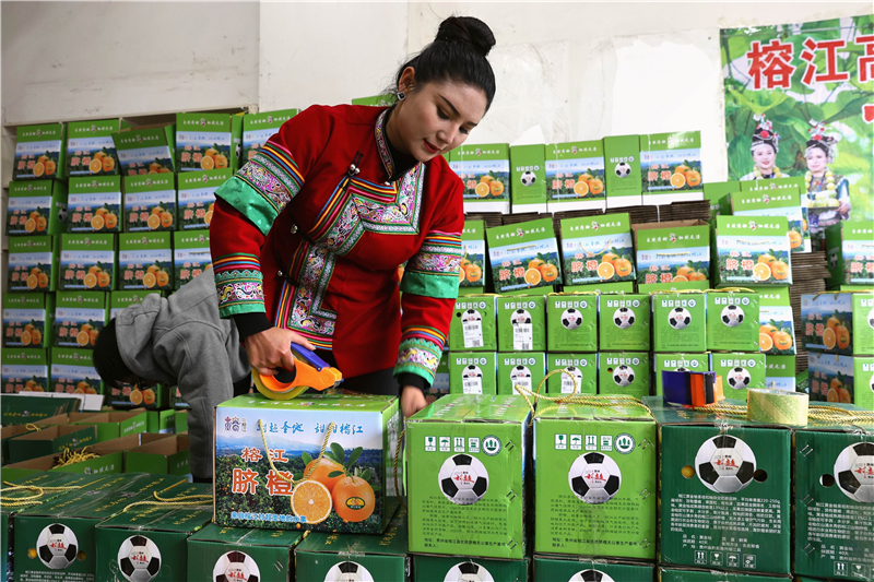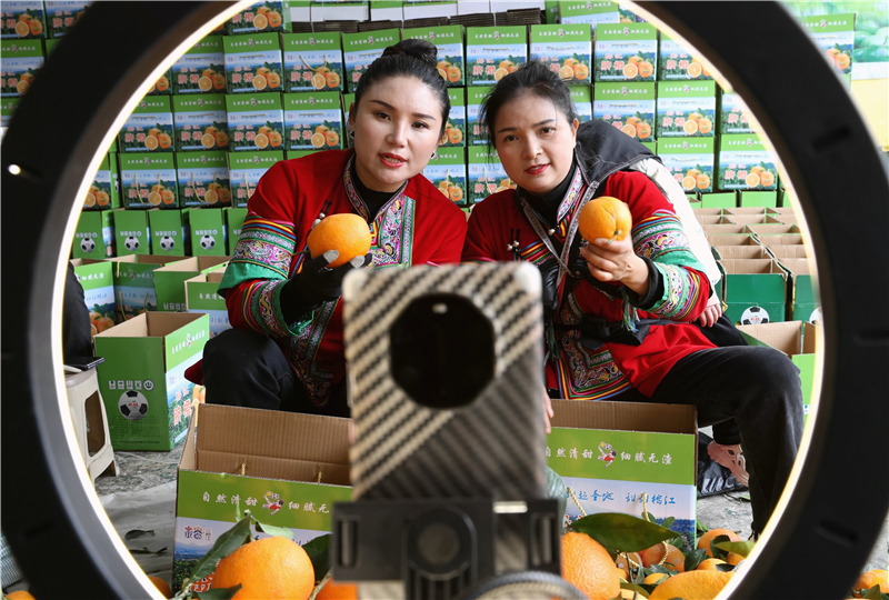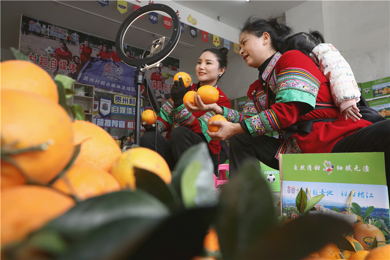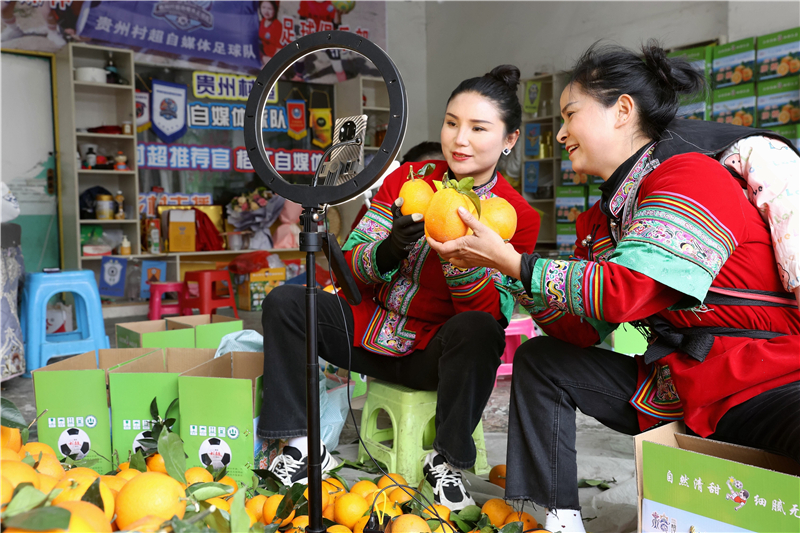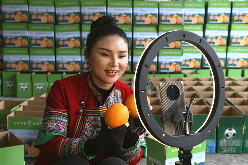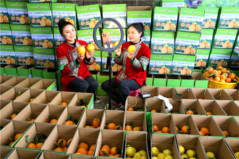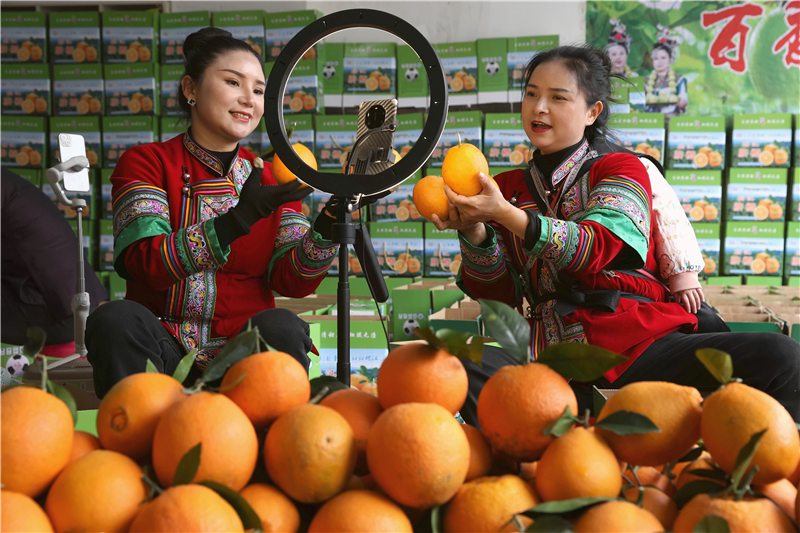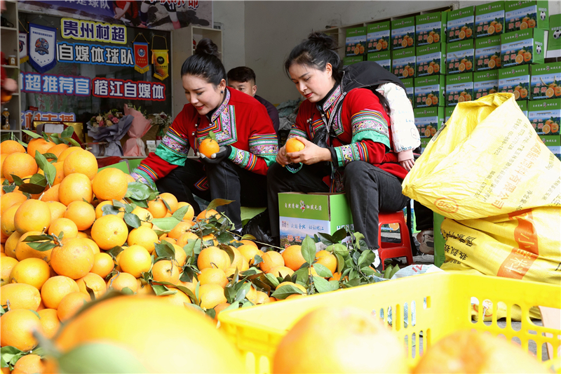 隨著春節(jié)臨近,貴州省黔東南苗族侗族自治州榕江縣種植的臍橙迎來銷售旺季,鄉(xiāng)村主播為果農(nóng)線上線下直播帶貨銷售臍橙,臍橙遠(yuǎn)銷北京、上海、廣州等城市,助農(nóng)增收。