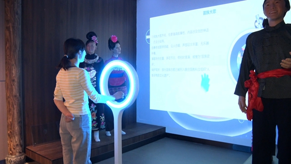 黔東南州丹寨苗族文化博覽館講解員張欣分享道:“我們講解員會身穿苗族服飾,講解我們苗族文化博覽館的蚩尤歷史事跡,以及苗族遠古社會背景,通過微縮雕塑背景圖、實物展臺以及動態(tài)疊加影像的方式,讓觀眾沉浸式地體驗我們的苗族文化?!?/p>