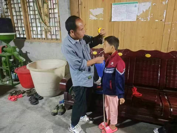 在光輝村一戶普通農(nóng)家小院里,12歲的小冬梅正配合“送教上門(mén)”老師記錄身高。因先天智力障礙無(wú)法正常入學(xué)的她,每周都能迎來(lái)來(lái)自關(guān)愛(ài)兒童之家的“專屬教師團(tuán)”。教師志愿者們帶著精心準(zhǔn)備的定制教具,將認(rèn)知訓(xùn)練、繪畫(huà)、音樂(lè)等課程搬進(jìn)農(nóng)家小院,用專業(yè)與耐心,為特殊兒童打開(kāi)認(rèn)知世界的窗口。