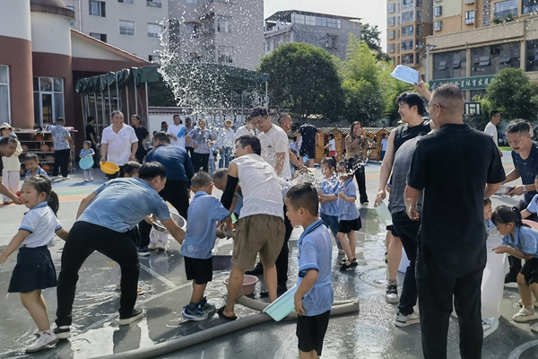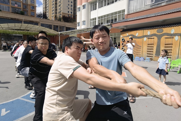 活動(dòng)當(dāng)天,幼兒園內(nèi)充滿了歡聲笑語(yǔ)。在親子游戲環(huán)節(jié),父子、父女們共同參與了 “拔河”“蒙眼吃西瓜”“手語(yǔ)操”“打水仗”等趣味游戲。家長(zhǎng)和孩子們默契配合,現(xiàn)場(chǎng)氣氛熱烈非凡。一位參與活動(dòng)的父親表示:“平時(shí)工作忙,很少有時(shí)間陪孩子。這樣的活動(dòng)非常有意義,讓我和孩子之間的關(guān)系更加親密了?!?/p>