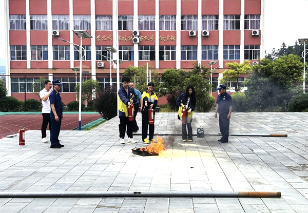 在實操環(huán)節(jié),消防隊員手持干粉滅火器,邊演示邊講解“提、拔、握、壓”四字口訣:“提起滅火器,拔掉保險銷,握住噴管前端,按壓壓把,對準火焰根部噴射……”隨后,學生們踴躍上前,在消防員的一對一指導下,親身體驗撲滅油盆火的全過程?!霸瓉頊缁鹨v究角度和距離,這次實操讓我真正掌握了滅火技能!”參與演練的學生小王興奮地說。