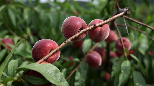 “桃子熟得壓彎了枝頭,果香四溢,整個果園都沉浸在一片甜蜜之中?!?6月17日,記者來到位于凱里市三棵樹鎮(zhèn)歐瀑村的景榮精品水果采摘園,遠遠就看見沉甸甸的果實掛滿枝頭,圓滾滾的黃桃像一個個金燦燦的小燈籠掛在枝頭,泛著誘人的光澤;粉嘟嘟的玉紅桃嬌羞地躲在葉片后,仿佛涂上了胭脂,透著一股嬌俏;扁平小巧的油蟠桃宛如一個個小貴婦,優(yōu)雅地棲息在枝丫間......香甜的桃香濃郁撲鼻。