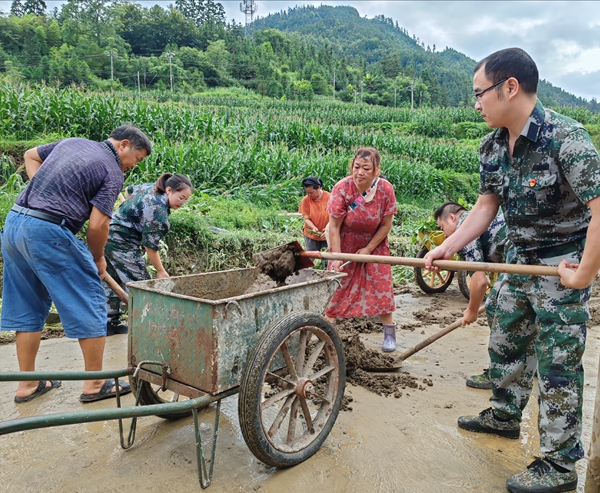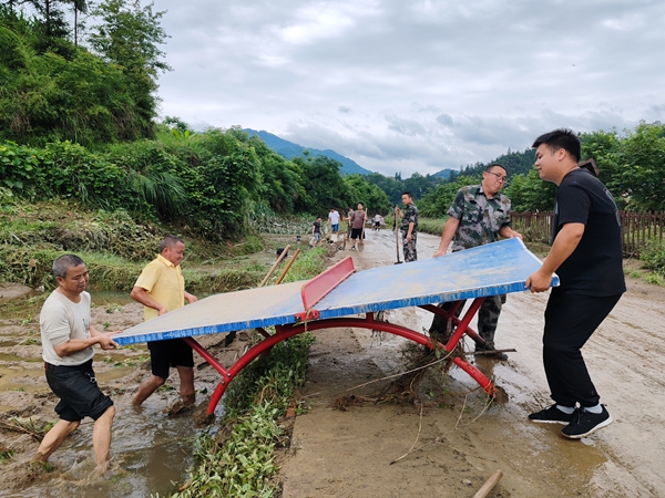 6月25日,10余名鎮(zhèn)干部、專職消防員、村“兩委”成員與熱心群眾組成清淤隊(duì),帶著斗車、鐵鏟、抽水機(jī),以“排濁煥新”的決心奔赴一線。現(xiàn)場,隊(duì)員們冒著積水揮鏟清淤,徒手疏通下水道;走進(jìn)臨河住戶家中,一鏟一鏟鏟除屋內(nèi)泥漿,用掃帚掃凈殘?jiān)?,再用水管反?fù)沖洗。泥漿濺滿褲腿、汗水浸透衣衫,卻澆不滅大家護(hù)安為民的熱情。
