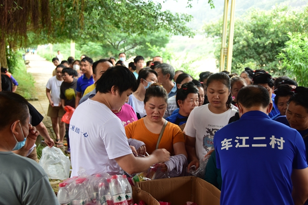 “我們的任務(wù)就是將群眾清理出來的零散垃圾和淤泥運出巷口,帶頭清理那些泡壞的大件家具!”清淤工作任務(wù)最重的時候,在車寨社區(qū)的街頭巷尾中,鐵鍬聲與掃帚的碰撞聲此起彼伏,烈日下,一抹抹黨員志愿紅在其間來回穿梭,成為一道亮麗的風(fēng)景線。夜幕降臨,他們疲憊的身影又出現(xiàn)在工業(yè)園區(qū),燈光下接力搬運、傳遞援助物資的忙碌剪影如一場托舉希望、傳遞溫暖的“生命接力”。