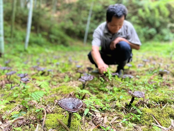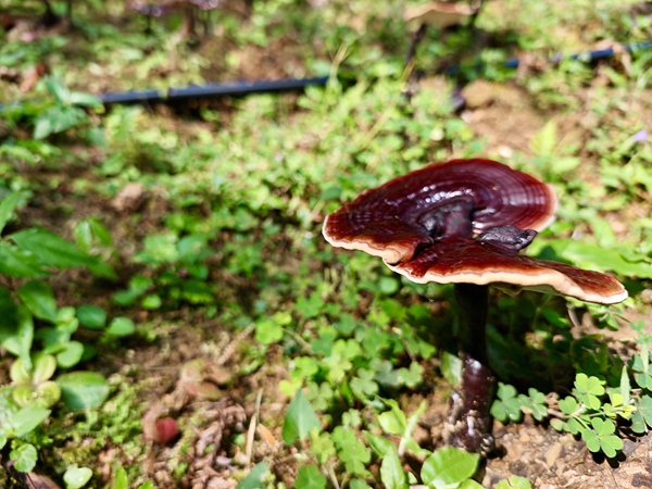 “現(xiàn)在是靈芝管護的關鍵時節(jié),你看這品相多好!它可是珍貴的藥用菌呢,市場銷路好,經(jīng)濟價值高,還很適合咱們村的環(huán)境。咱得趁著這時候好好打理,等收成時,腰包自然鼓起來嘍?!秉h員種植示范戶吳高邊清理雜草邊笑著說道。