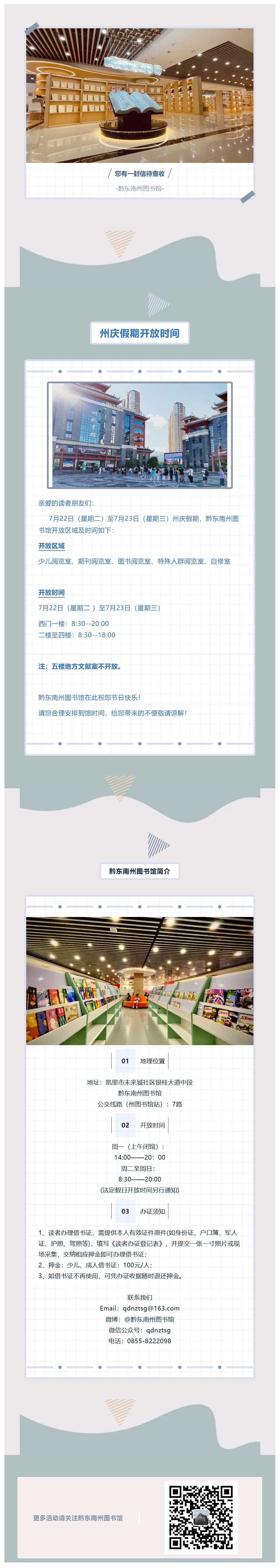 黔東南州圖書館2025年州慶假期開放時(shí)間安排