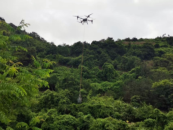 為此,鎮(zhèn)遠(yuǎn)縣?陽鎮(zhèn)請來了專業(yè)的無人機(jī)吊運團(tuán)隊,破解了材料運輸?shù)摹翱ú弊印彪y題。此前,砂石、水泥等原材料需經(jīng)“三輪車轉(zhuǎn)運1200米—手推車接力500米—人工挑運300米”的多重環(huán)節(jié),不僅耗費大量人力物力,運輸效率低下,還受限于地形難以保障進(jìn)度。