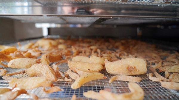 跟隨運(yùn)送天麻的車輛,記者走進(jìn)這座現(xiàn)代化的加工廠。生產(chǎn)線上,鮮天麻的第一站是“氣泡清洗機(jī)”。伴隨著水流的輕柔翻滾,天麻表面的泥土與雜質(zhì)被徹底剝離,露出其飽滿細(xì)膩的肉質(zhì)。這看似簡(jiǎn)單的一步,卻是告別傳統(tǒng)手工清洗、確保原料潔凈無(wú)污染的關(guān)鍵開端。