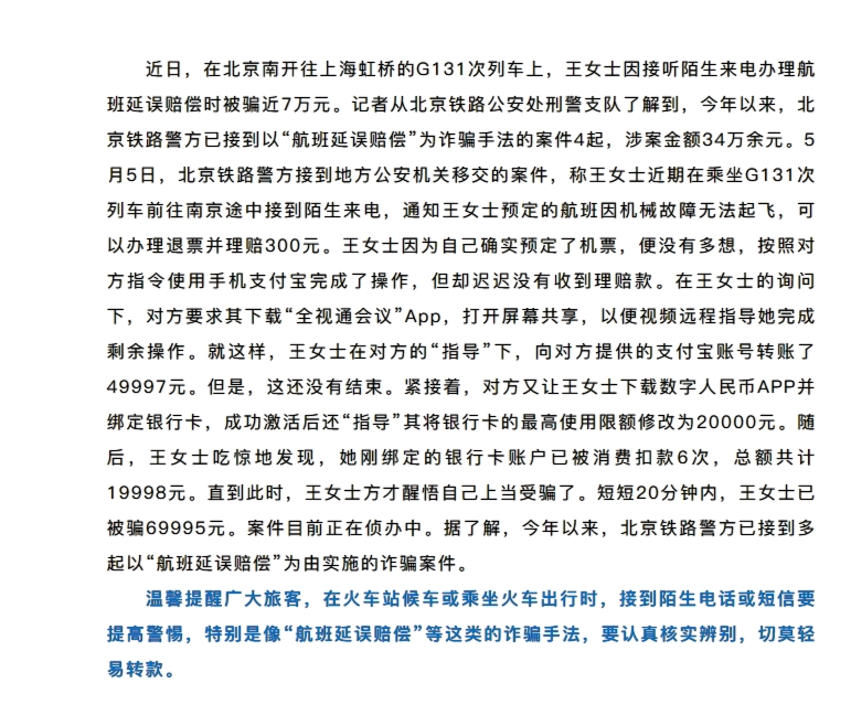警惕受騙!乘火車時接到這類電話或短信要警惕