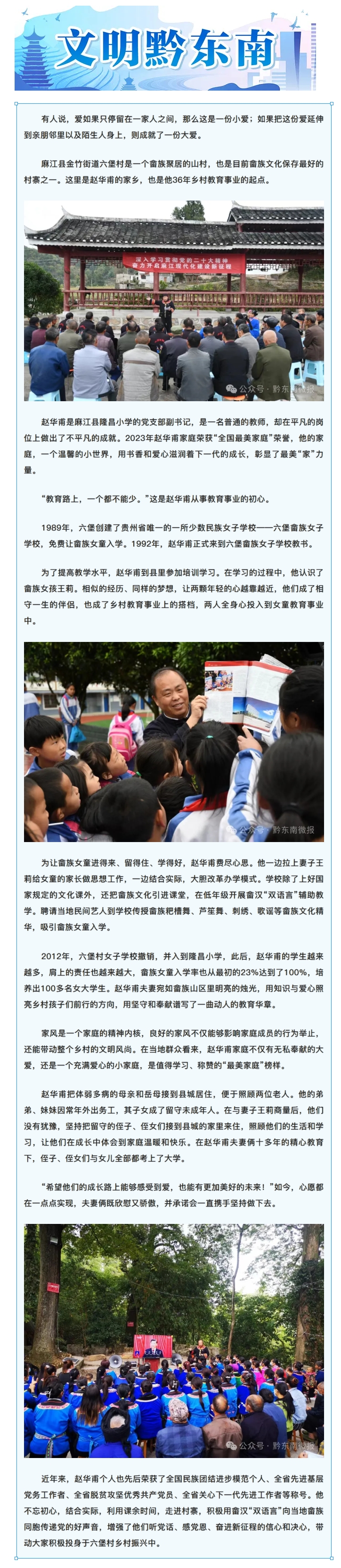 文明黔東南 | “全國最美家庭”趙華甫家庭:小家傳大愛 彰顯最美“家”力量