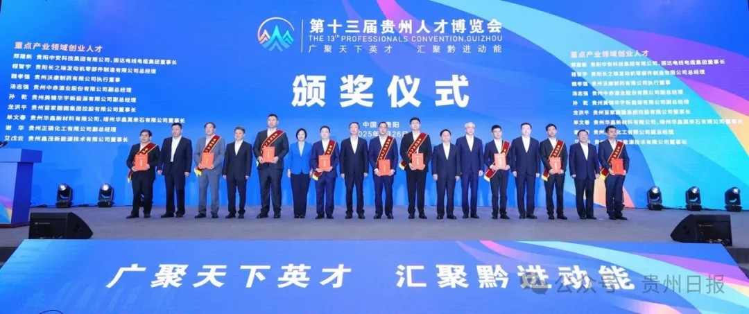 與會領導為重點產(chǎn)業(yè)領域創(chuàng)業(yè)人才獎獲得者頒獎。國家有關部委、部分重點高校、中央在黔單位,省有關部門、各市(州)黨委政府負責同志,部分國家級人力資源服務產(chǎn)業(yè)園,人力資源服務機構、行業(yè)協(xié)會負責同志等400余人參加。