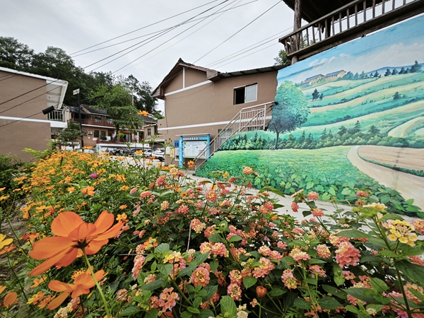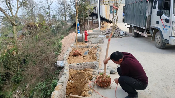 這醉人花徑,是汗水澆灌的集體詩行。乘著“兩清兩改兩治理”行動?xùn)|風(fēng),棉花村“兩委”與駐村工作隊帶領(lǐng)公益性崗位人員,以雙手重塑家園風(fēng)貌。眾人奔赴陽芳村河壩,在灘涂間躬身采擷:一方方鵝卵石、一塊塊舊磚瓦,這些曾被遺忘的“沉睡頑石”,在他們的巧思下蛻變?yōu)榛▔|(zhì)樸的筋骨。依坡就勢,沿路砌坎;沃土填基,籽落生春——40斤百日草、30斤硫華菊的種子,在集體汗水的浸潤中,將“廢料場”幻化成“生態(tài)畫廊”。