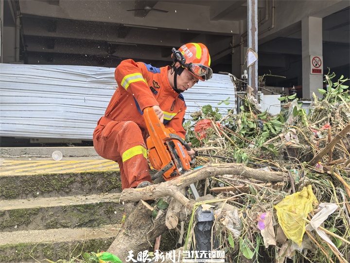 張井華扎進(jìn)齊膝深的黑泥,徒手用撬棍別開纏繞的鐵皮,用液壓剪切割變形的貨架;雙手在黏稠腥臭的泥漿里摸索、抓扒,將堵塞排水口的爛木板、破編織袋和碎石塊徒手清理出來,一點(diǎn)一點(diǎn)撕開通道。