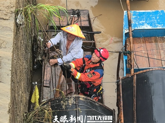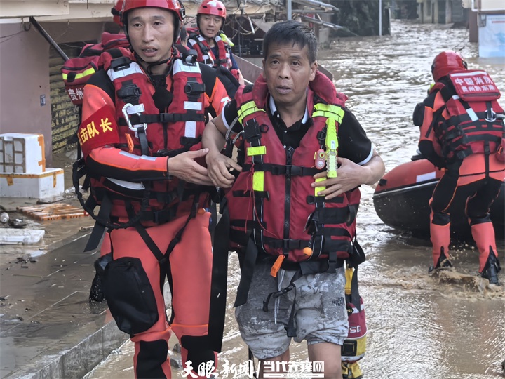 當(dāng)特大洪水正摧毀都柳江堤岸,縣城應(yīng)急響應(yīng)警報(bào)刺破長空,數(shù)萬人緊急撤離——黔東南的從江縣鑾里大道消防救援站特勤一班副班長張井華與戰(zhàn)友們逆流沖向被困者。
