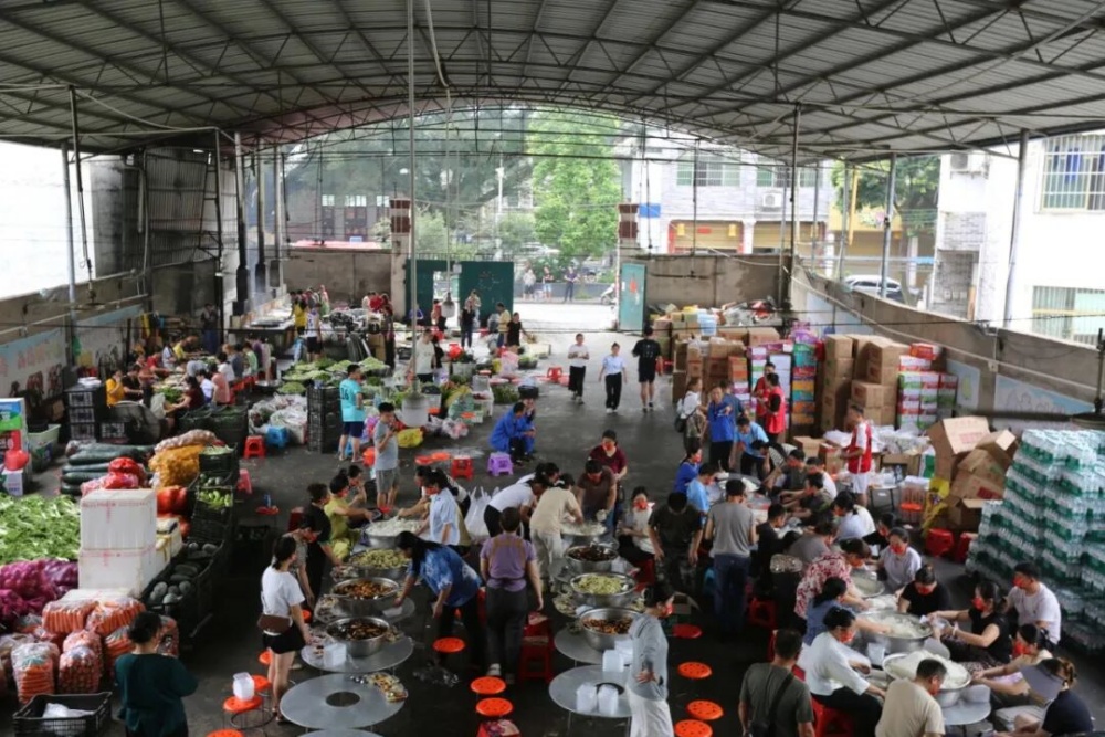 此后,張愛珍和 “月寨嬢嬢團(tuán)” 干脆扎進(jìn)食堂。摘菜、洗菜、切菜、炒菜、打包,20多人分工明確,流水線作業(yè)有條不紊。 張愛珍帶頭從家里拿肉,姐妹們也紛紛響應(yīng)?!皼]有肉,我們就你家?guī)捉镂壹規(guī)捉锏販?,那天還湊了21只雞。大家齊心協(xié)力,為的就是能讓受災(zāi)群眾和救援人員盡快吃上熱乎飯?!?張愛珍回憶起當(dāng)時(shí)的場(chǎng)景,感慨地說。