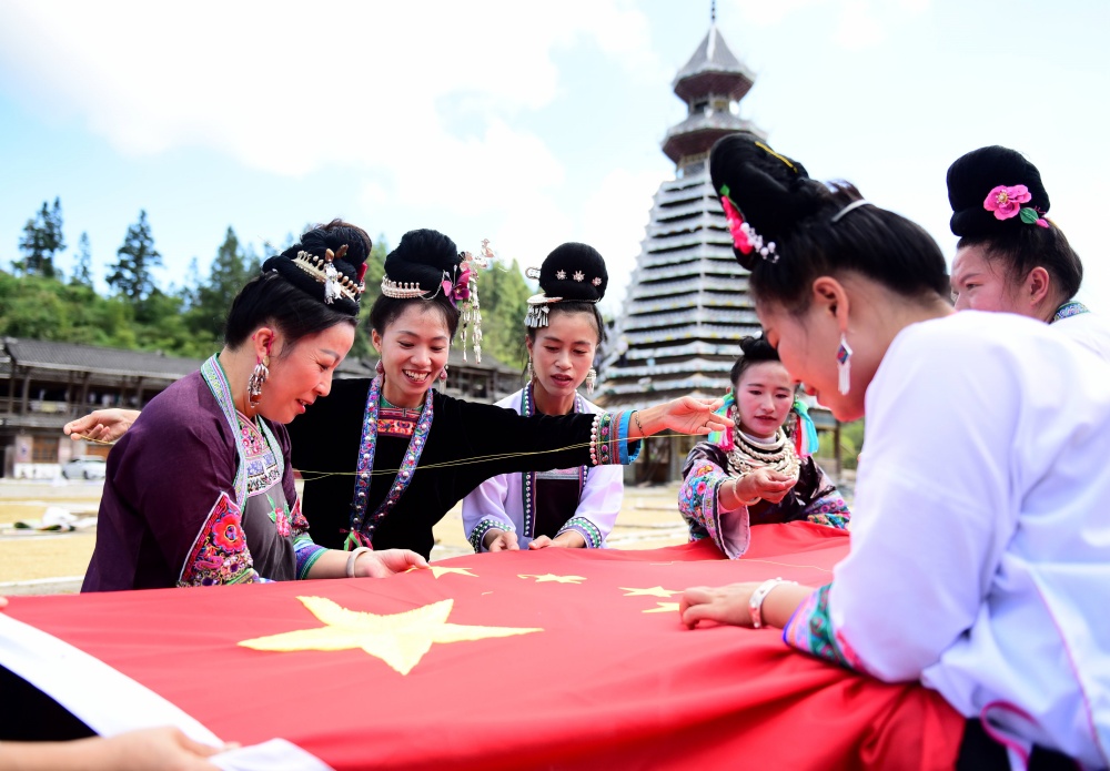 貴州從江:侗族婦女繡國(guó)旗迎國(guó)慶