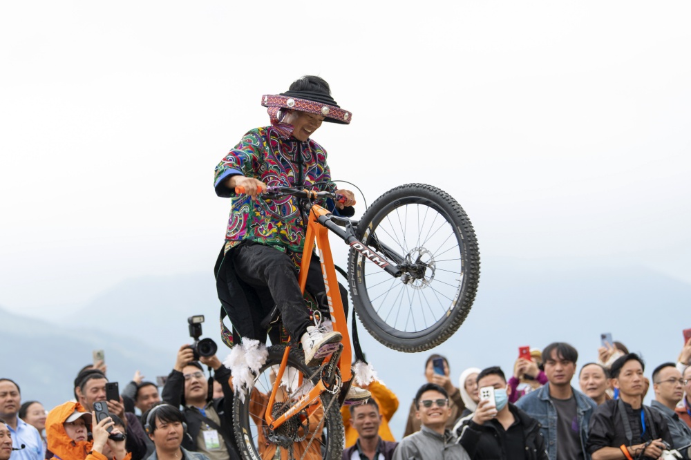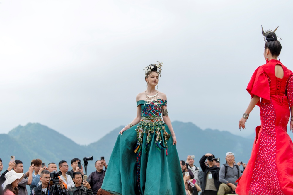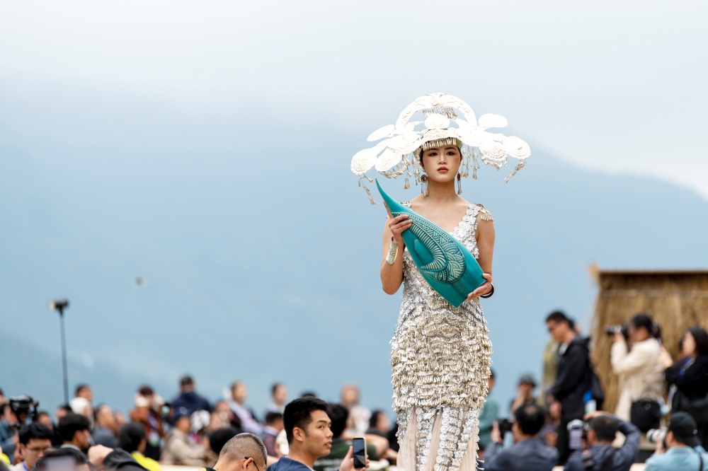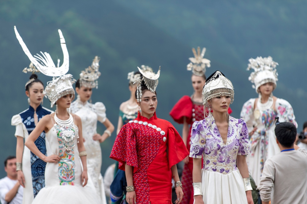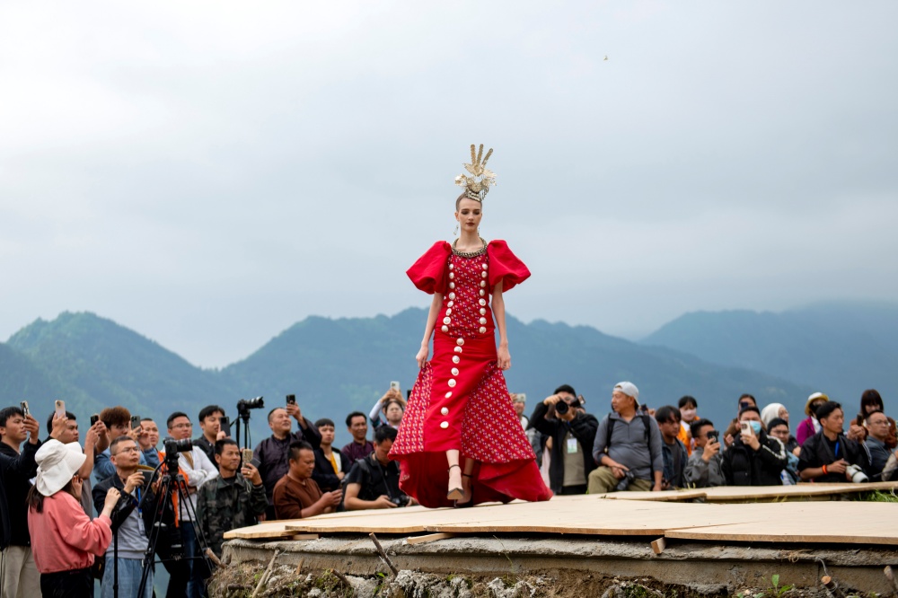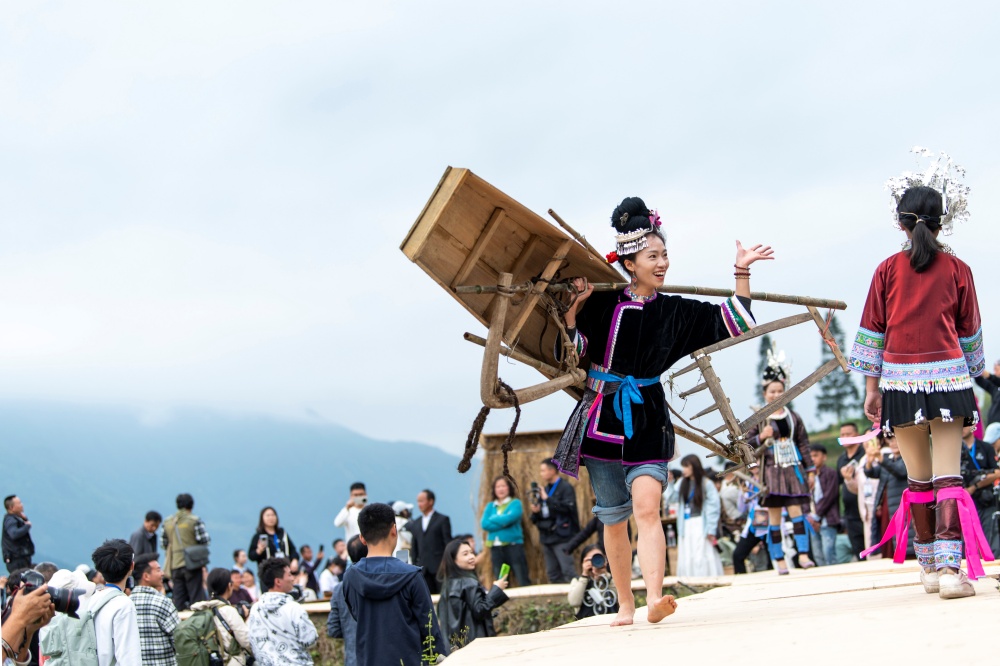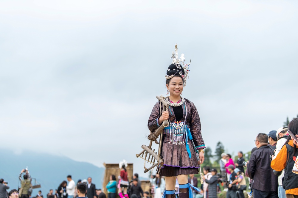 4月26日,村民在貴州省從江縣加榜梯田上參加梯田走秀活動(dòng)。