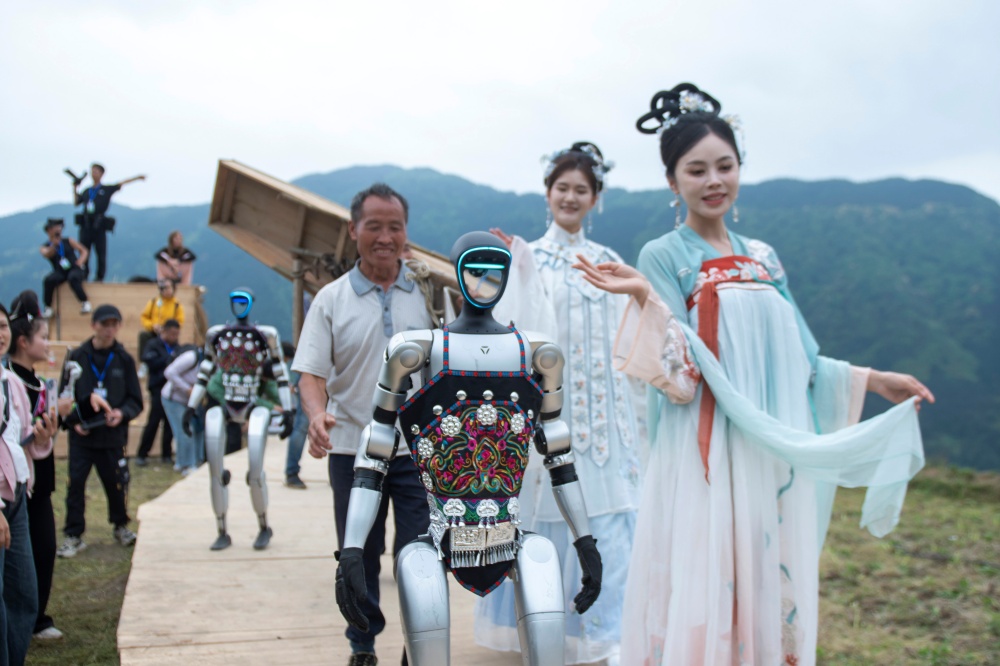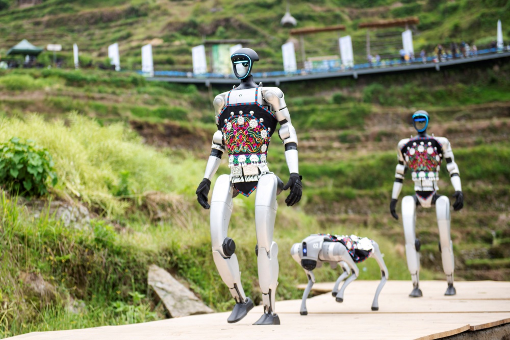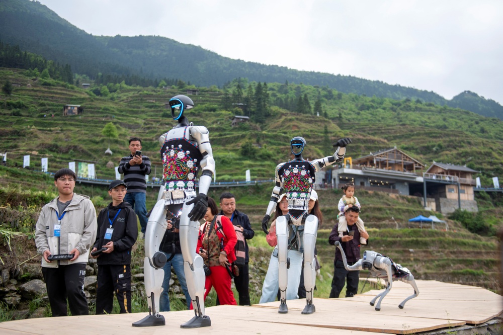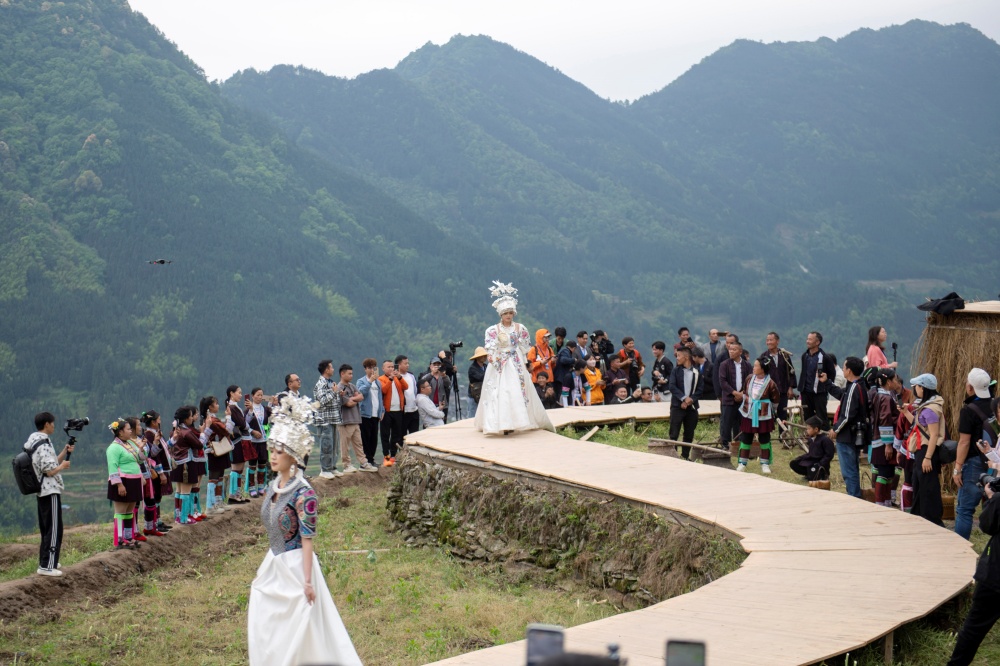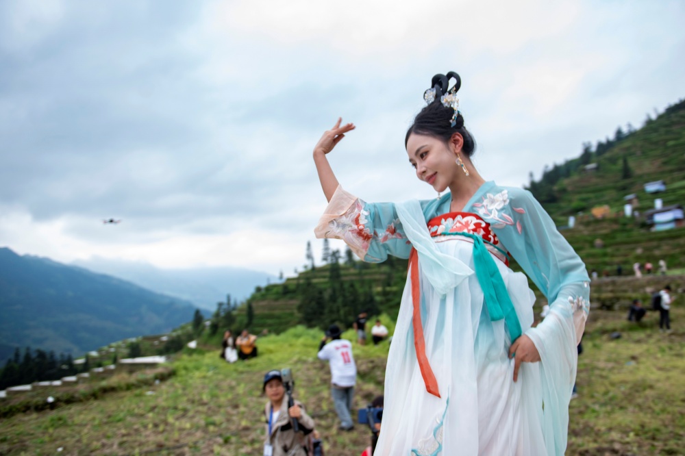 當(dāng)日,貴州省黔東南苗族侗族自治州從江縣加榜梯田舉行開秧門暨首屆加榜“T”田秀活動(dòng)。梯田變身秀場,村民、模特、機(jī)器人以梯田為T臺(tái),上演一場精彩的走秀表演。