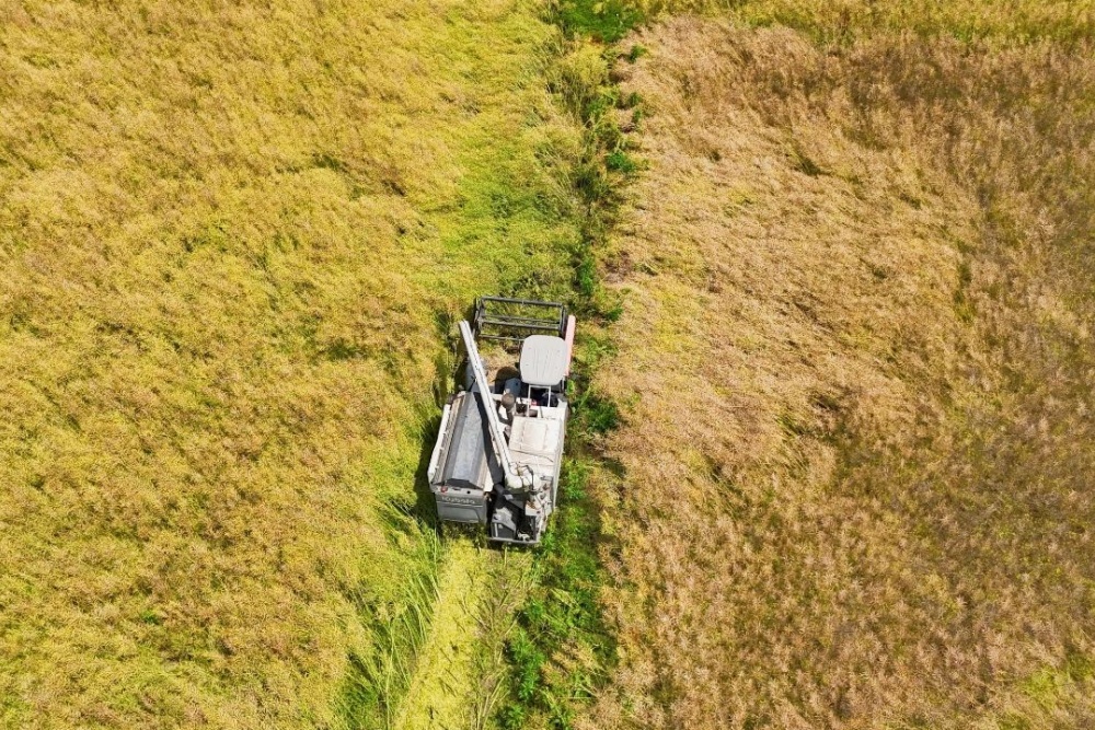 走進南明大壩,連片的油菜田里,收割機正開足馬力作業(yè)。齒輪轉動間,一排排油菜被整齊收割、高效脫粒,粉碎后的秸稈則均勻地拋灑在田間,化作滋養(yǎng)土地的天然肥料。據貴州劍南農科技有限公司負責人周權介紹,當地創(chuàng)新采用“稻油輪作”種植模式,實現“一地雙收”,既提高了土地利用率,又能通過秸稈還田有效改善了土壤結構。
