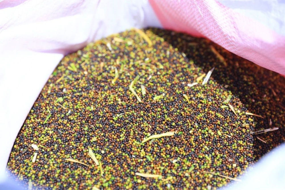 說話間,黑黃相間的油菜籽已裝滿了好幾袋,整齊地碼放在機車旁。通過“企業(yè)+合作社+農戶”的運營模式,南明鎮(zhèn)大部分的油菜種植已實現規(guī)?;C械化、標準化,貴州劍南農科技有限公司還配備烘干榨油設備,真正實現了從田間到餐桌的產銷一體化。目前,該公司通過土地流轉,已建成800畝標準化油菜種植基地,預計可收菜籽12萬公斤,實現綜合產值80萬元,同時還能帶動周邊農戶增收。