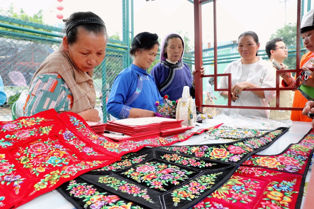 貴州省黔東南苗族侗族自治州榕江縣車民街道為推動(dòng)社區(qū)民族團(tuán)結(jié),讓非遺文化得到傳承和發(fā)展,促進(jìn)群眾增收。當(dāng)日,榕江縣車民街道在富民社區(qū)開展“匠心傳承多彩民族”以及線上線下推銷手工產(chǎn)品活動(dòng),活動(dòng)期間,市民進(jìn)行手工藝產(chǎn)品展示走秀,鄉(xiāng)村新媒體主播在展播位上同時(shí)直播,線上線下銷售刺繡、蠟染、竹編、銀飾、服飾等民族手工藝產(chǎn)品,進(jìn)一步拓寬銷售渠道助力增收。