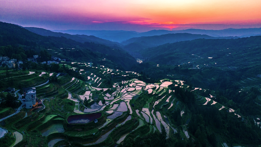 黎平:日落梯田美