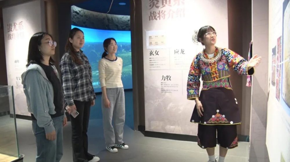 丹寨苗族文化博覽館講解員張欣分享道:“我們講解員會身穿苗族服飾,講解我們苗族文化博覽館的蚩尤歷史事跡,以及苗族遠(yuǎn)古社會背景,通過微縮雕塑背景圖、實(shí)物展臺以及動態(tài)疊加影像的方式,讓觀眾沉浸式地體驗(yàn)我們的苗族文化。”