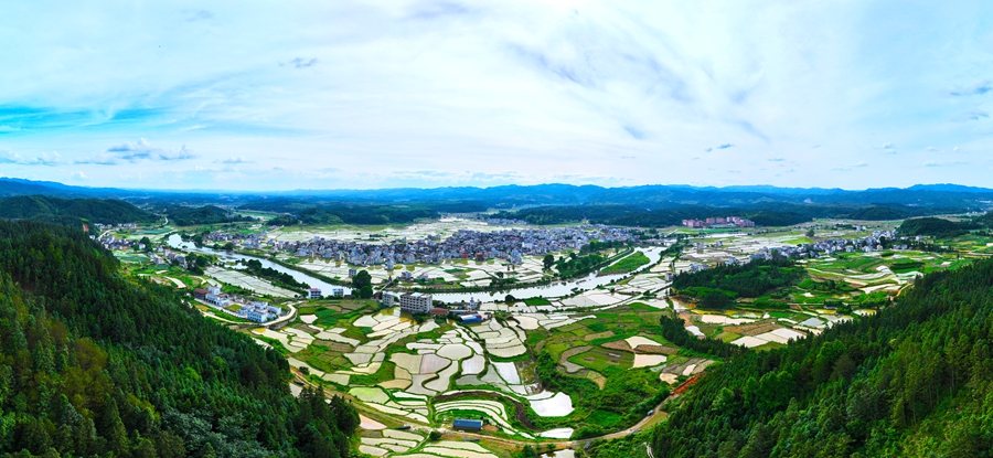 5月26日下午,錦屏縣敦寨鎮(zhèn)農(nóng)業(yè)大壩沐浴在金色陽光中,一幅生機勃勃的鄉(xiāng)村振興新畫卷正徐徐鋪展。這片位于亮司村與平江村的農(nóng)業(yè)大壩,正值稻田蓄水插秧的關(guān)鍵時節(jié),處處涌動著發(fā)展的活力與希望。