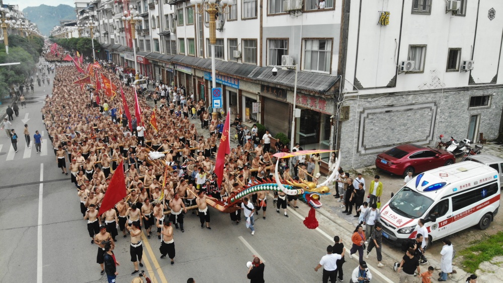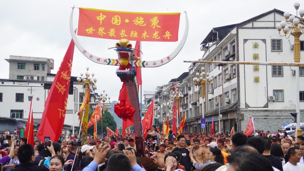 2000壯漢抬世界最長(zhǎng)獨(dú)木龍舟震撼登場(chǎng)
