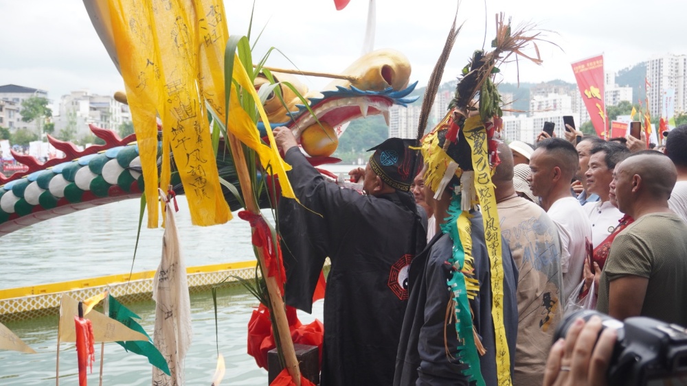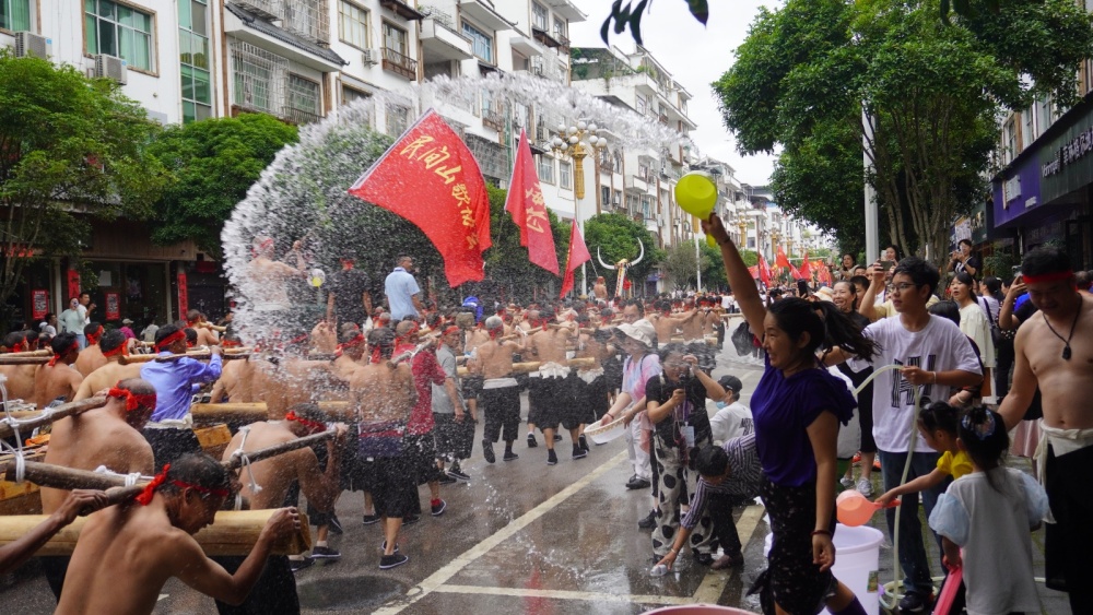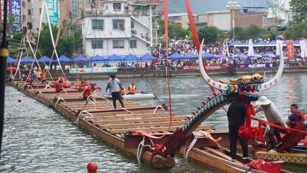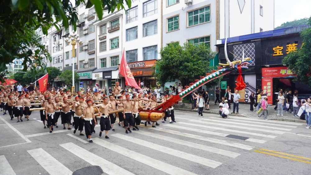5月31日,2025年“水韻貴州”中國(guó)施秉獨(dú)木龍舟節(jié)暨非遺文化展示周系列活動(dòng)在施秉縣城音樂(lè)噴泉廣場(chǎng)開(kāi)幕,2000壯漢抬世界最長(zhǎng)獨(dú)木龍舟(108米)震撼登場(chǎng)。