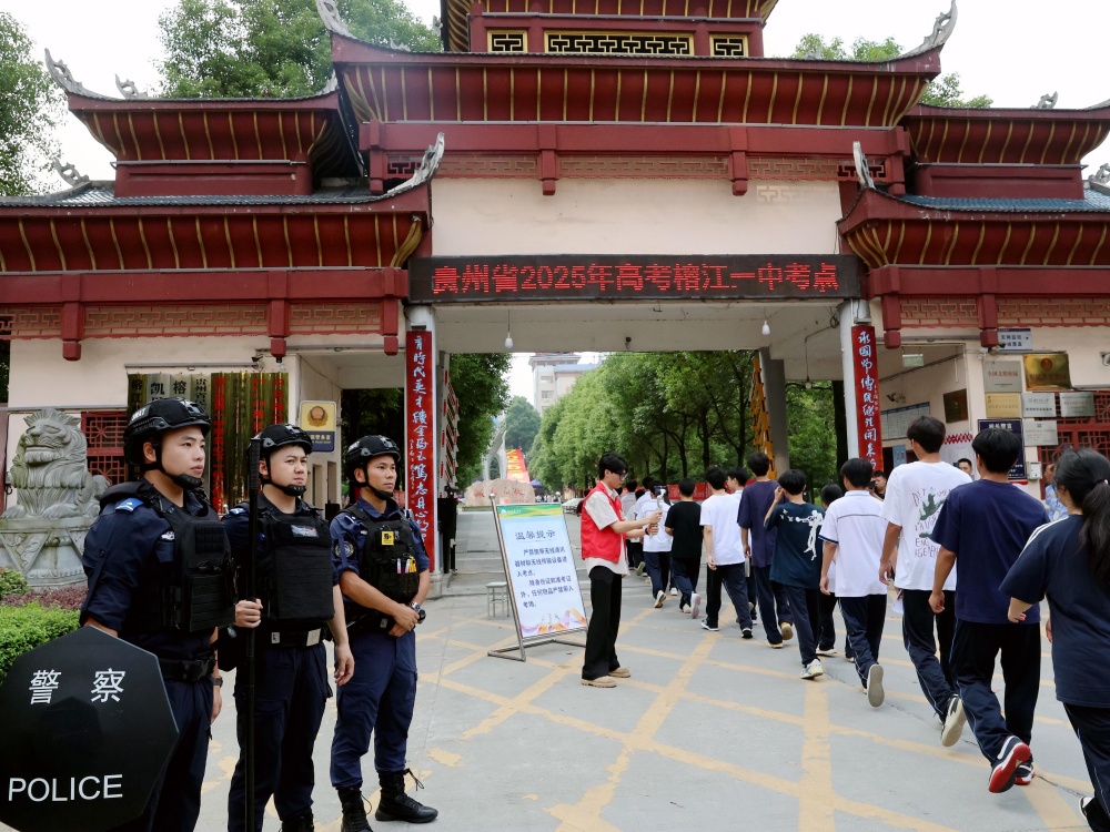 當(dāng)日,2025年全國高年高考拉開帷幕。貴州省黔東南苗族侗族自治州榕江縣采取強(qiáng)徑措施確保高考順利進(jìn)行。