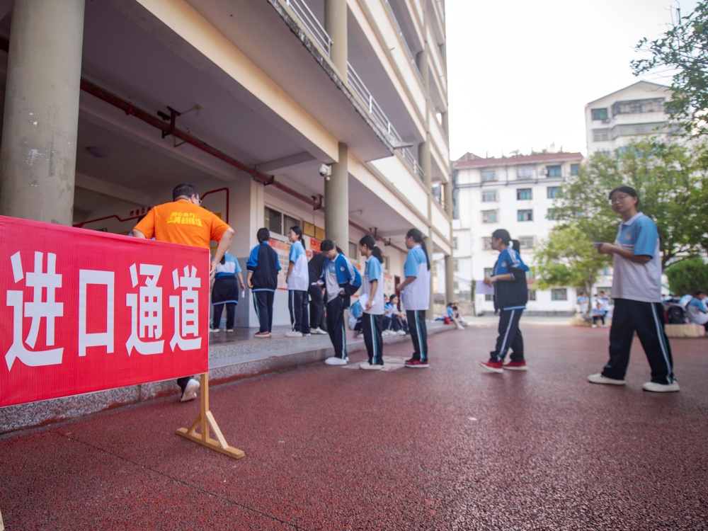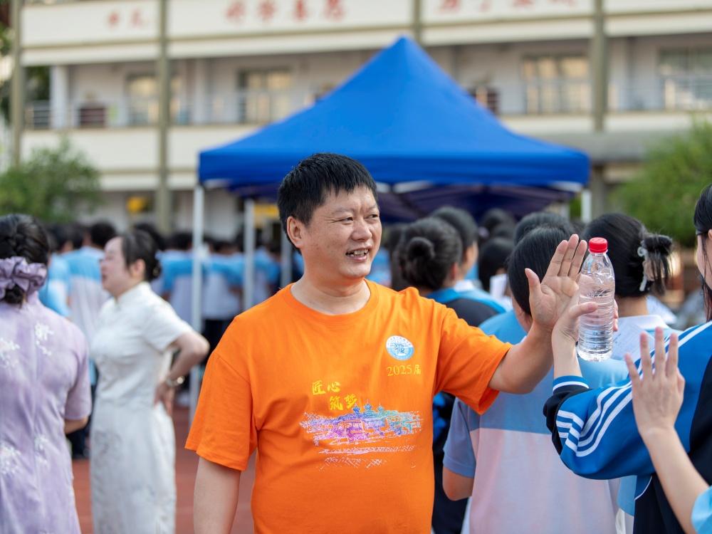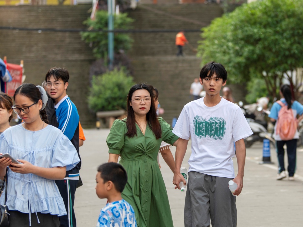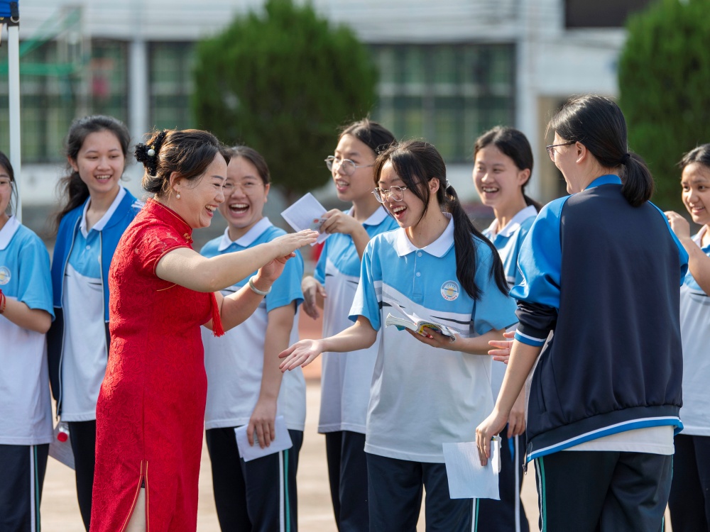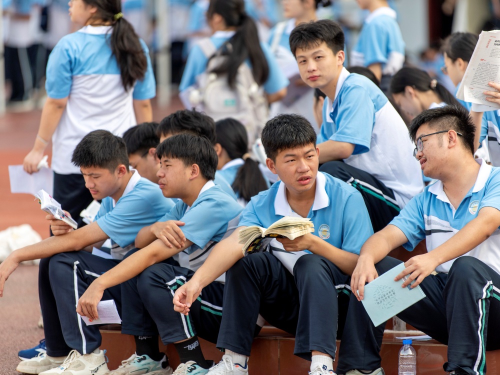 6月7日,在貴州省從江縣第一民族中學(xué)考點(diǎn),送考老師帶著“葵花”為考生加油。當(dāng)日,2025年全國高考拉開帷幕。