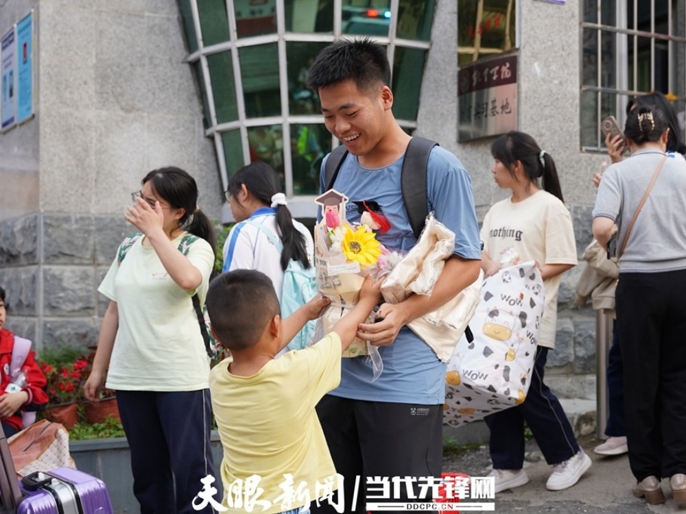 6月9日下午6點(diǎn)15分,2025年全國(guó)高考正式落下帷幕。在黔東南州劍河縣劍河民族中學(xué)考點(diǎn),隨著考場(chǎng)的大門緩緩打開,考生們懷著激動(dòng)的心情走出考場(chǎng)。而考場(chǎng)外的考生親屬早已等候多時(shí),為考生們送去鮮花與擁抱。